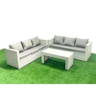 6 Seater Garden Outdoor Rattan Furniture Set Sofa Oblong Coffee Table Light Grey Mixed Fimous