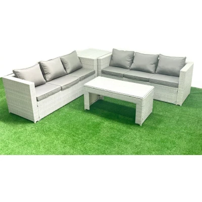 6 Seater Garden Outdoor Rattan Furniture Set Sofa Oblong Coffee Table with Side Light Grey Mixed Fimous
