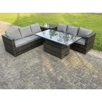 6 Seater Outdoor Rattan Sofa Set Adjustable Rising Lifting Dining Table Side Tea Coffee Dark Grey Mixed Fimous