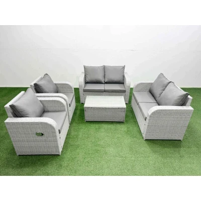 6 Seater Outdoor Reclining Chair Love Sofa Set Rattan Garden Furniture with Rectangular Coffee Table Light Grey Fimous