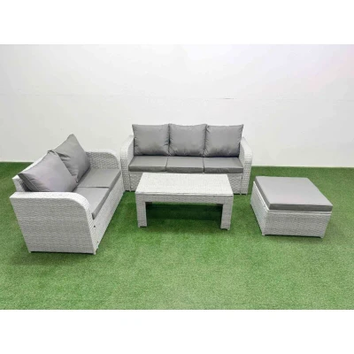 6 Seater pe Rattan Wicker Garden Furniture Patio Conservatory Sofa Set with Oblong Coffee Table 3 Love Big Footstool Fimous