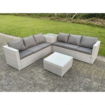 6 Seater pe Wicker Light Grey Rattan Garden Corner Sofa Sets Outdoor Patio Furniture Coffee Table Fimous
