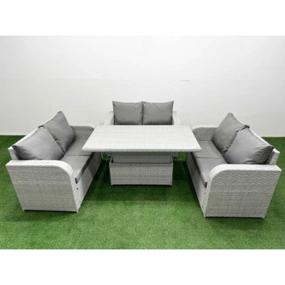 6 Seater pe Wicker Rattan Furniture Sofa Sets with Adjustable Lifting Dining or Coffee Table 2 Love Light Grey Fimous