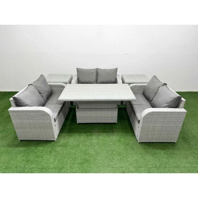 6 Seater pe Wicker Rattan Furniture Sofa Sets with Adjustable Lifting Dining or Coffee Table 2 Love Side Light Grey Fimous