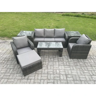 6 Seater Rattan Garden Furniture Set with Rectangular Coffee Table 2 Side Tables Big Footstool Patio Outdoor Fimous