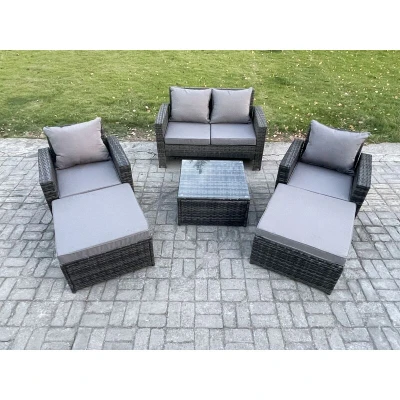 6 Seater Rattan Outdoor Garden Furniture Sofa Set Table & Chairs with 2 Big Footstool Dark Grey Mixed Fimous