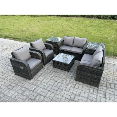 6 Seater Rattan Sofa Set Outdoor Garden Furniture with Square Coffee Table Loveseat Reclining Chairs 2 Side Tables Dark Grey Mixed Fimous
