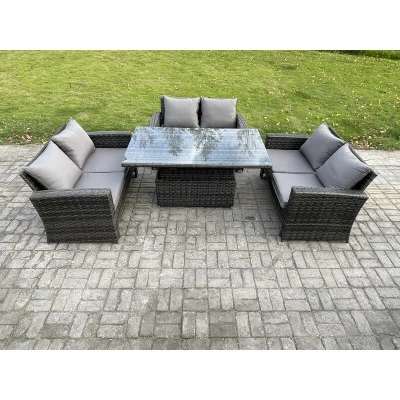 6 Seater Rattan Wicker Garden Furniture Patio Conservatory Sofa Set with Height Adjustable Rising Lifting Table Double Seat Fimous