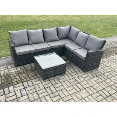 6 Seater Wicker pe Outdoor Garden Furniture Set High Back Rattan Corner Sofa with Square Coffee Table Fimous