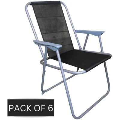 6 x Foldable garden chairs Fixed position with grey frame and black fabric