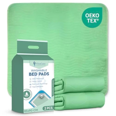 ULTIMATE PROTECTION FOR BEDS AND FURNITURE: Washable bed protectors offer reliable protection against leaks, spills, and incontinence accidents. Incontinence bed sheets are ideal for adults, seniors, children. Incontinence bed pads help keep mattresses, sofas, chairs, and car seats dry and clean. Bed pads are a perfect solution for home care, potty training and essential for every household. MAXIMUM ABSORBENCY WITH LEAK LOCK TECHNOLOGY: ViraCare washable bed pads are designed with a high-absorbency multi 4 layers core. Each pad can quickly absorb moisture, preventing leaks and odours from reaching your furniture. These bed wetting mats are ideal for overnight use and provide long-lasting dryness and peace of mind for both users and caregivers. SOFT, SKIN-FRIENDLY COMFORT FOR SENSITIVE SKIN: ViraCare bed protectors for incontinence feature a quilted, breathable top layer which feel soft against the skin and reduce the risk of irritation or discomfort. They are suitable for those with sensitive skin or prolonged bed use. Enjoy a restful night’s sleep with materials that promote comfort, airflow, and skin health. MACHINE WASHABLE, DURABLE & SECURE FIT: Waterproof mattress protector are machine washable and dryer-friendly, built to withstand repeated laundering without losing their shape or absorbency.