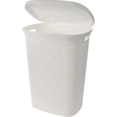60 Litre Large White Plastic Laundry Basket with Lid Diamond Washing Clothes Storage Hamper Bin