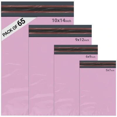 60 Mixed Parcel Bags Baby Pink, Mailer Tamper Proof Strong Postal Packaging for Shipping, Mailing & Delivery, 4 Sizes Small to Large Bags, 15 Each