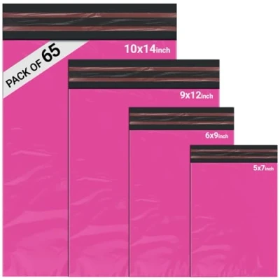 60 Mixed Parcel Bags Hot Pink, Mailer Tamper Proof Strong Postal Packaging for Shipping, Mailing & Delivery, 4 Sizes Small to Large Bags, 15 Each