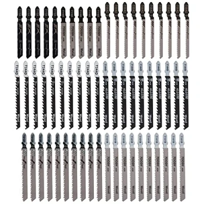 60 pcs Jigsaw Blades Set for Festool, Bosch, Hitachi, Milwaukee,Makita, Straight and Fast Cuts Wood Plastic Metal Cutting