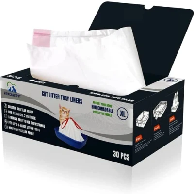CAT LITTER LINER WITH DRAWSTRING -The cat litter bags are designed with the strong drawstring handles for easy disposal. Just grab the drawstrings, lift and the bag comes out, no spilling or breaking or mess and you can dispose bag easily.Using drawstring liners allows for less time time cleaning and more time bonding with your cat. SUPER THICK AND STRONG LITTER BOX BAGS - Made of sturdy material, scratch-resistant, tear resistant ,waterproof,leak proof and disposable.Our litter bags are strong enough to withstand your lovely kitty claws. Our xl cat litter liner are thick and ultra strong nothing will damage them THE LITTER TRAY LINERS ARE BIODEGRADABLE- Biodegradable bags are made from natural materials which means they are safer for users. Extra large cat litter trays are biodegradable they take less time to decompose and they are easy to recycle,keeping environment clean and saving the planet we all live in.And they also free from any harmful material. EASILY CLEANUP CAT LITTER BAGS – Cat litter liner xl are Convenient for Quick and Easy Hygenic Cleaning and save your cleanup time. The Litter Tray Liners prevent the build up of unpleasant smell and odours from Pet Urine and Faeces in the House. You just change out the bag and put it new one which saves you from needing to clean the garbage can.