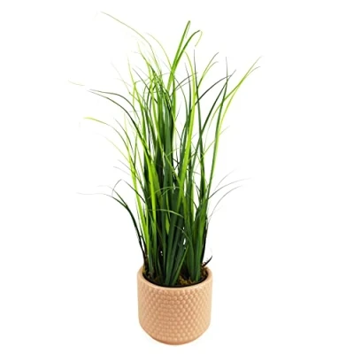 Pack of artificial grass plant and coordinating ceramic planter. 60cm Artificial Onion Grass Plant Artificial plant by Leaf Design UK. Potted in a plain plastic pot and is fully assembled This can be used with the included separate ceramic planter or on its own. Dusty Pink Raised Dots Ceramic Plant Pot 15 (w) x 15 (d) x 12 5cm (h). Grass 60cm tall Genuine Leaf Design UK Product