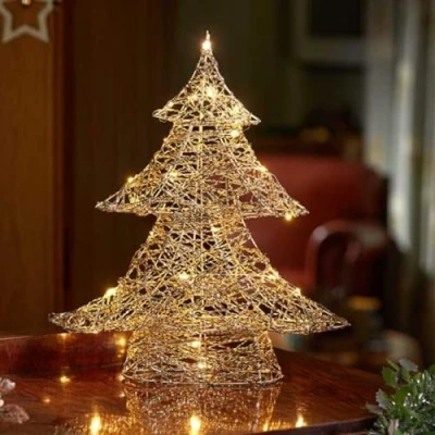 AmazonStriking Wire Mesh Design: Beautifully sculpted gold-tone metal with a unique openwork tree silhouette for a modern festive look. Warm White Micro LEDs: Includes 30 micro LEDs for a soft, glowing light that adds warmth and ambiance to any space. Tall & Elegant at 60cm: A striking addition to any holiday display—perfect for tabletops, mantels, and window displays. Built-In Timer Function: 6 hours on, 18 hours off cycle ensures worry-free operation throughout the season. Battery Operated Convenience: Powered by 3 x AA batteries (not included), with a 30cm lead wire for clean, flexible placement.