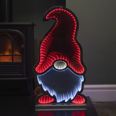 Add a dash of Nordic charm and festive sparkle to your seasonal decor with this Light up Christmas Gonk with Red Hat Infinity Light. This enchanting decoration combines the cosy, whimsical appeal of a classic Christmas gonk with the magic of modern LED lighting, making it a standout piece for any festive display.. Standing 60cm tall, this delightful decoration features a festive gonk, complete with signature bushy beard and tall red hat. A beloved symbol of Scandinavian Christmas traditions, this gonk brings warmth, character, and a touch of mischief to your festive setting. The built-in Infinity Light Effect creates the illusion of endless lights with a mix of red and white LEDs. With a metal base, the gonk is both stable and stylish. The base ensures secure placement whether you choose to display it indoors or in a sheltered outdoor area. Supplied with a 3-metre clear cable, this decoration allows for flexible placement wherever you want a pop of festive magic.. Suitable for indoor and sheltered outdoor use.. Product Specifications. Red and White LEDs. 60cm Height. Mains Powered with a 3m Power Cable