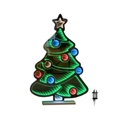 ManoManoGeneral description This stunning 60cm Light up Christmas Tree Infinity Decoration transforms your holiday decor with its mesmerizing multi-coloured LED lights. The infinity lights create a modern mirror effect, producing an illusion of depth and a repeating light pattern. This simple yet captivating display offers an amazing 3D effect as you view the tree from different angles, making it a perfect festive centerpiece and a talking point for family and guests. Technical specifications Height: 60 cm Length: 43 cm Stand dimensions: 20 cm x 11 cm Cable length: 5 m Installation Quick and easy to set up Peel the film off the mirror Attach the base and plug in Usage Suitable for indoor use Can be placed on flat surfaces such as a mantle piece, windowsill, or by the front door Transformer plug must remain indoors