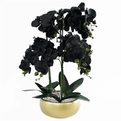 General description This 60cm Orchid Artificial Black - Gold Ceramic Planter features highly realistic PVC flowers and comes beautifully arranged in a stunning ceramic pot. Perfect for adding a touch of elegance to your indoor space, this orchid is ready to display straight out of the box. Technical specifications Orchid height: 60cm Overall dimensions: 60cm x 40cm x 40cm Pot dimensions: 26cm (diameter) x 10cm (height) Pot material: Ceramic Usage This artificial orchid is designed for indoor use only, making it an ideal decorative piece for homes, offices, or any indoor setting.