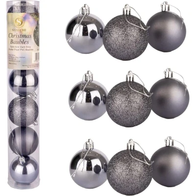 60mm/6Pcs Christmas Baubles Shatterproof Dark Grey, Tree Decorations Ball Ornaments Balls Xmas Hanging Holiday Decor Shiny,Matte,Glitter