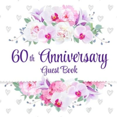 60th Anniversary Guest Book: Orchid & Hearts Design Party Sign In Message Book Gift Log Memory Keepsake
