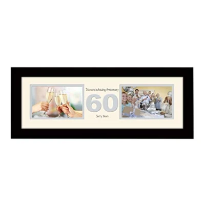 60th Anniversary Photo Frame Diamond Wedding Sixtieth Gift Takes Two 6x4 Landscape Photos 1236A (Black Finish Cream Mount Grey Inside)