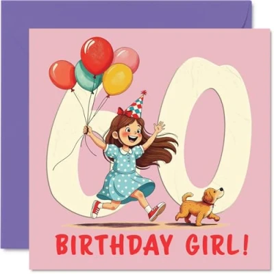 60th Birthday Cards for Women Balloon Girl Happy Card 60 Year Old Woman Neighbour Grandma Auntie Sister, 145mm Bday Greeting