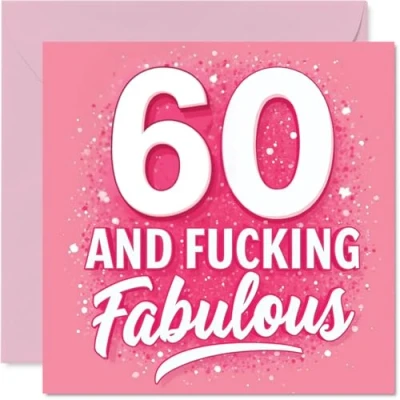 MAKE HER SMILE WITH THIS UNIQUE BIRTHDAY CARD: This exceptional quality birthday card for her shows the design '60 AND FUCKING FABULOUS'. If you are looking for special birthday greetings cards for Women birthday card then then this happy birthday card is bound to make her smile. Not just for birthday gifts for Women this could also be for Sister, Auntie, Neighbour, Grandma, Nan, Cousin, Wife or Friend. WHAT DO YOU GET: The card is printed on one side and BLANK ON THE INSIDE to allow you to write your very own message. The unique fun design is printed on a specially sourced and environmentally responsible board. At 360 microns thick the natural white one-sided gloss board has a quality look and feel. Supplied with a coloured gummed envelope to complement the design and ready to be sealed and sent in the post. Great Sister birthday cards, 60th birthday card, Auntie birthday card. NO INK SMUDGES: There is nothing worse than writing inside a card to find that the shiny surface makes the ink smudge. This is why we use a high quality one sided coated board. The uncoated side will absorb more of the ink from your pen to make smudging a thing of the past. 60th Birthday card for Neighbour, 60th Birthday card for Grandma, 60th Birthday card for Nan. SIZES: Greeting Card = 145mm x 145mm, Envelope = 155mm x 155mm, Card Thickness = 360 micron. Cousin 60th birthday card, birthday cards for Wife, cute birthday cards for Friend, 60th birthday card Sister, Auntie 60th birthday card. MADE AND QUALITY CHECKED IN THE UK: We print and manufacture all our products right here in the UK so you can be sure of a fast turnaround and a product that is expertly made. Using environmentally responsible premium board our card is conscious of the responsible management of the world's forests - perfect birthday cards for Women, fun birthday cards for her, Auntie 60th birthday cards, female birthday cards.