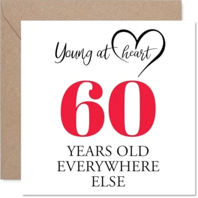60th Birthday Cards for Women Men Young at Heart Happy Card 60 Year Old Woman Man Nan Friend Cousin Grandad, 145mm Bday Greeting