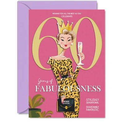 60th Birthday Cards for Women Years Of Fabulousness Happy Card 60 Year Old Woman Wife Grandma Neighbour Auntie, A5 Bday Greeting