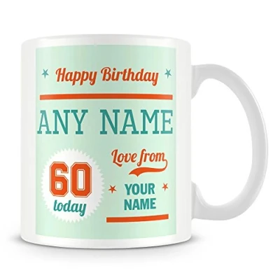 60th Birthday Gift Personalised Mug/Cup Add Name Green