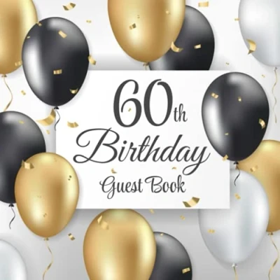 60th Birthday Guest Book: Black & Gold Balloons Party Sign In Message Book Gift Log Memory Keepsake