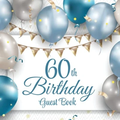 60th Birthday Guest Book: Blue & Silver Balloons Party Sign In Message Book Gift Log Memory Keepsake