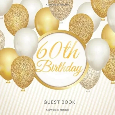 60th Birthday Guest Book: for Celebration of a Party, Fabulous Keepsake Gift Book Best Wishes and Messages from Family Friends to ... Cream Paper, Gold White Baloons Glossy Cover