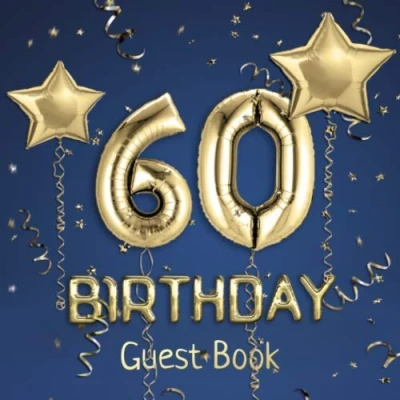 60th Birthday Guest Book: Message Logbook and Book for Party 100 Pages Guests to leave their Comments & Wishes Blue Cover with Golden Balloons