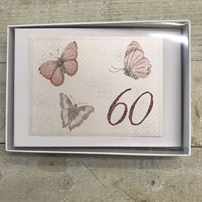 60TH Birthday. Special Occasion. Tiny Photo Album. Vintage Butterflies Design. Hand Finished by WHITE COTTON CARDS (VB60T)