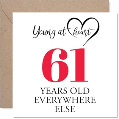 61st Birthday Cards for Men Women Young at Heart Happy Card 61 Year Old Man Woman Friend Auntie Nan Cousin, 145mm Bday Greeting