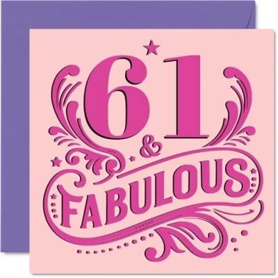 61st Birthday Cards for Women Fabulous Happy Card 61 Year Old Woman Auntie Grandma Nan Nanny, 145mm Bday Greeting