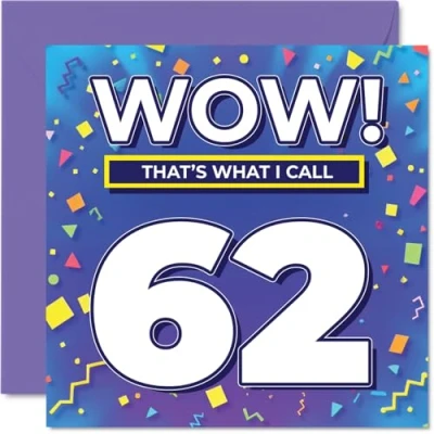 62nd Birthday Cards for Men Women WOW Thats What I Call Happy Card 62 Year Old Man Woman Uncle Grandma Friend Auntie, 145mm Bday Greeting