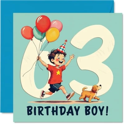 63rd Birthday Cards for Men Balloon Boy Happy Card 63 Year Old Man Husband Neighbour Dad Friend, 145mm Bday Greeting