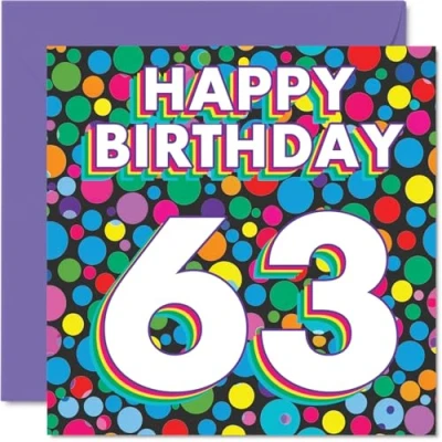 63rd Birthday Cards for Women Men Funky Rainbow Dots Happy Card 63 Year Old Woman Man Uncle Friend Wife Neighbour, 145mm Bday Greeting