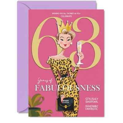 63rd Birthday Cards for Women Years Of Fabulousness Happy Card 63 Year Old Woman Cousin Nanny Friend Grandma, A5 Bday Greeting