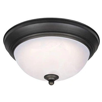 AmazonTraditional 28 cm flush mount design combines energy-efficient LED technology and classic style Rich oil rubbed bronze finish with white alabaster glass adds warm ambiance to any décor 12 cm high, 28 cm diameter Integrated 15-watt LED is equivalent to a 60-watt incandescent bulb, dimmable when used with a compatible dimming switch Five-year limited warranty against defects in materials and workmanship, includes installation instructions and mounting hardware, CE, Reach, RoHs Certified