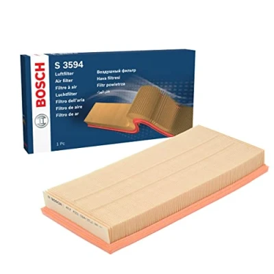 Helps prevent air leakages: With matching seals and a precise fit, the filter blocks contaminants and avoids annoying leaks High tensile strength and resistance to moisture: Thanks to the filter media properties, the filter can withstand exposure to humidity without losing its effectiveness or structural integrity Built to last: The flat panel design ensures even airflow and maximum surface contact, giving the filter excellent dust-holding capacity and durability High standards: The dust holding capacity, filtration efficiency plus all function and quality tests are performed in accordance with international standards Works under tough conditions: The air filter withstands heat and pressure Compatibility: Use the vehicle identification number in the parts' search function to find the right air filter for your vehicle Installation: All assembly work should be carried out by trained professionals Scope of delivery: 1 Bosch S3594 Air Filter - Packaging dimensions: Height 46 mm, Length 395 mm, Width 182 mm