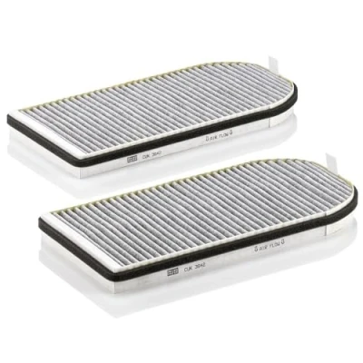 MANN-FILTER Cabin Air Filter CUK 3642-2 (set of 2) / Dimensions (mm): A = 362; B = 181; H = 30 / Premium Filter in Original Equipment Quality High-quality MANN-FILTER cabin filters with active carbon - nearly 100% protection from particles like pollen, diesel soot & tyre abrasion / Additional protection from harmful gases & unpleasant odour The trated highly-effective activated carbon gives protection against harmful gases such as ozone, nitrogen oxide or sulphur dioxide and eliminates unpleasant odours during the entire service interval Looking to find the correct filter? Select: brand, model, vehicle type, and engine type above to see which one fits your vehicle MANN+HUMMEL complies with REACH-regulation + supports the goal of Improved health and safety through the design, manufacturing, usage, disposal and recycling of our products