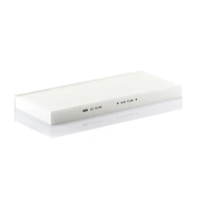 MANN-FILTER Cabin Air Filter CU 4179 / Dimensions (mm): A = 404; B = 164; H = 32 / Premium Filter in Original Equipment Quality High-quality MANN-FILTER cabin filters offer almost 100% protection against particles such as pollen, diesel soot and tyre abrasion - for a feel-good climate in the vehicle interior and protection of the air conditioning system Exact fit and perfect tightness ensure constant filtration performance during the entire service interval / Optimum vehicle interior ventilation due to the high air flow capacity Looking to find the correct filter? Select: brand, model, vehicle type, and engine type above to see which one fits your vehicle MANN+HUMMEL complies with REACH-regulation + supports the goal of Improved health and safety through the design, manufacturing, usage, disposal and recycling of our products