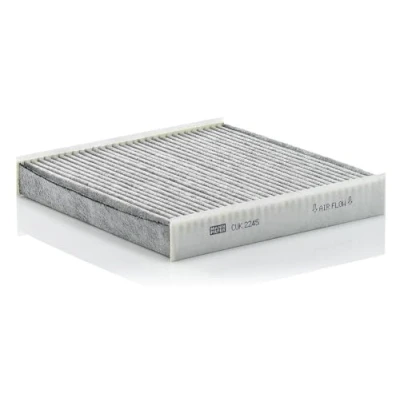 MANN-FILTER Cabin Air Filter CUK 2245 / Dimensions (mm): A = 218; B = 226; H = 36 / Premium Filter in Original Equipment Quality High-quality MANN-FILTER cabin filters with active carbon - nearly 100% protection from particles like pollen, diesel soot & tyre abrasion / Additional protection from harmful gases & unpleasant odour The trated highly-effective activated carbon gives protection against harmful gases such as ozone, nitrogen oxide or sulphur dioxide and eliminates unpleasant odours during the entire service interval Looking to find the correct filter? Select: brand, model, vehicle type, and engine type above to see which one fits your vehicle MANN+HUMMEL complies with REACH-regulation + supports the goal of Improved health and safety through the design, manufacturing, usage, disposal and recycling of our products