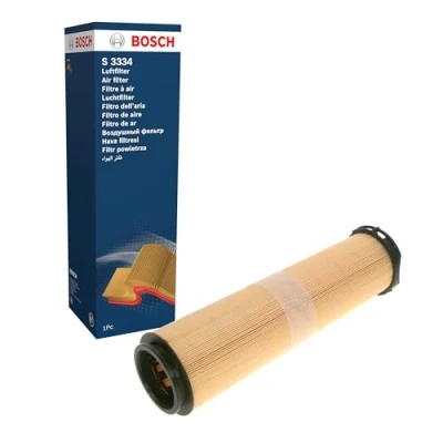 Helps prevent air leakages: With matching seals and a precise fit, the filter blocks contaminants and avoids annoying leaks High tensile strength and resistance to moisture: Thanks to the filter media properties, the filter can withstand exposure to humidity without losing its effectiveness or structural integrity Built to last: The cylindrical round design provides optimal stability and resistance to pressure, while allowing a high volume of air to pass through efficiently High standards: The dust holding capacity, filtration efficiency plus all function and quality tests are performed in accordance with international standards Works under tough conditions: The air filter withstands heat and pressure Compatibility: Use the vehicle identification number in the parts' search function to find the right air filter for your vehicle Installation: All assembly work should be carried out by trained professionals Scope of delivery: 1 Bosch S3334 Air Filter - Packaging dimensions: Height 434 mm